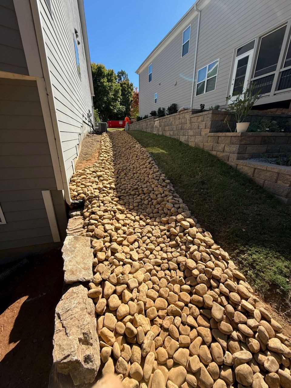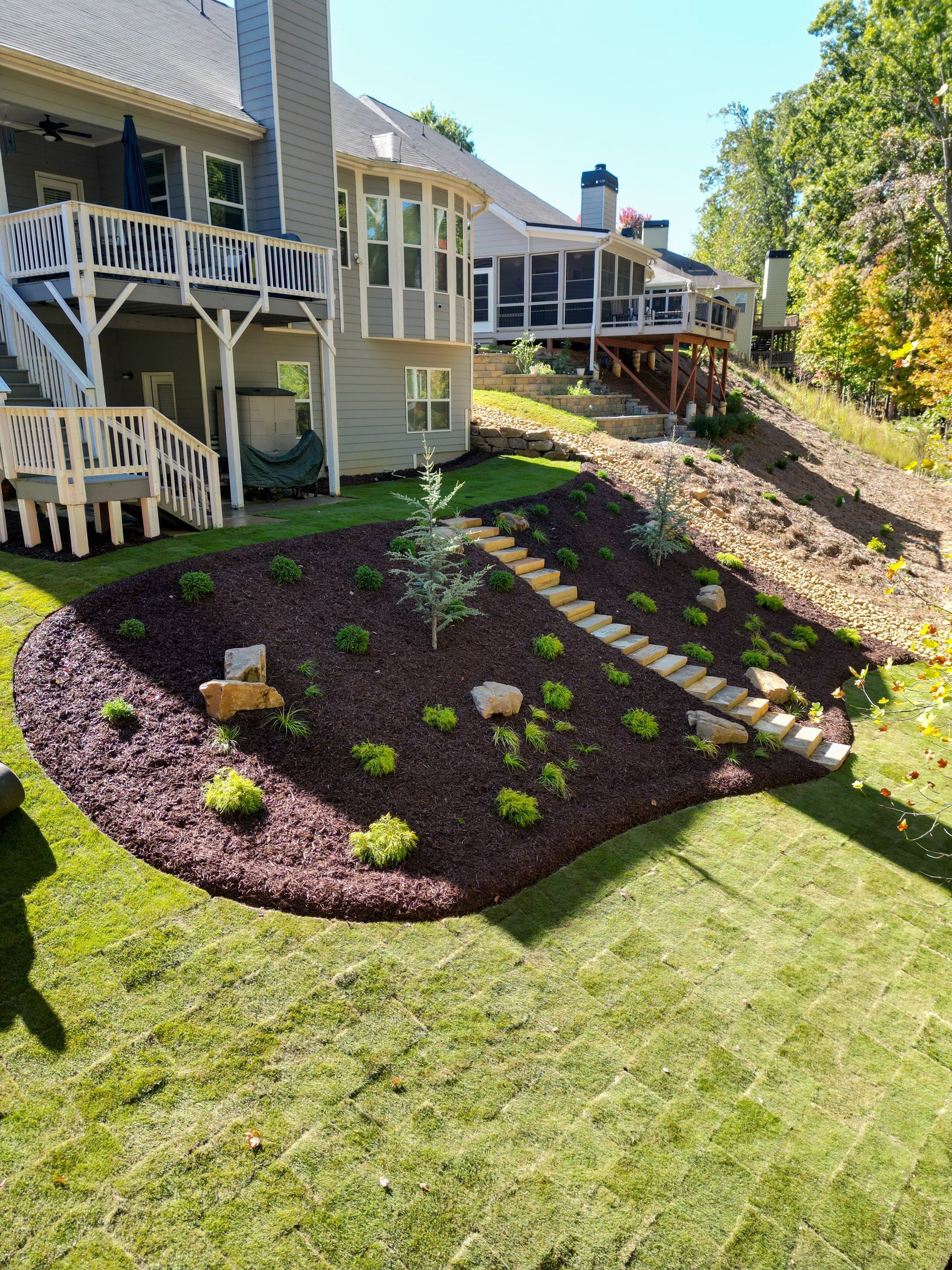Yes, we assess and resolve drainage and erosion issues with solutions like grading improvements, dry creek beds, French drains, and soil stabilization. As a landscaping company in Alpharetta, GA, we regularly address the challenges local homeowners face with runoff and uneven terrain. We start with a detailed evaluation of your property’s layout to identify the underlying causes. Our goal is to ensure your yard remains functional, safe, and protected from long-term water damage.